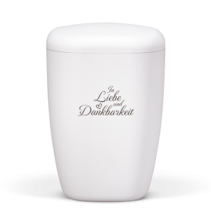 Naturstoffurne, Weiß-Matt, Lasergravur, “In Liebe und Dankbarkeit”