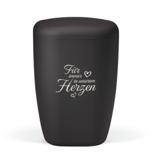Naturstoffurne, Anthrazit Vel. Lasergravur Trauertext “Für immer in unserem Herzen”