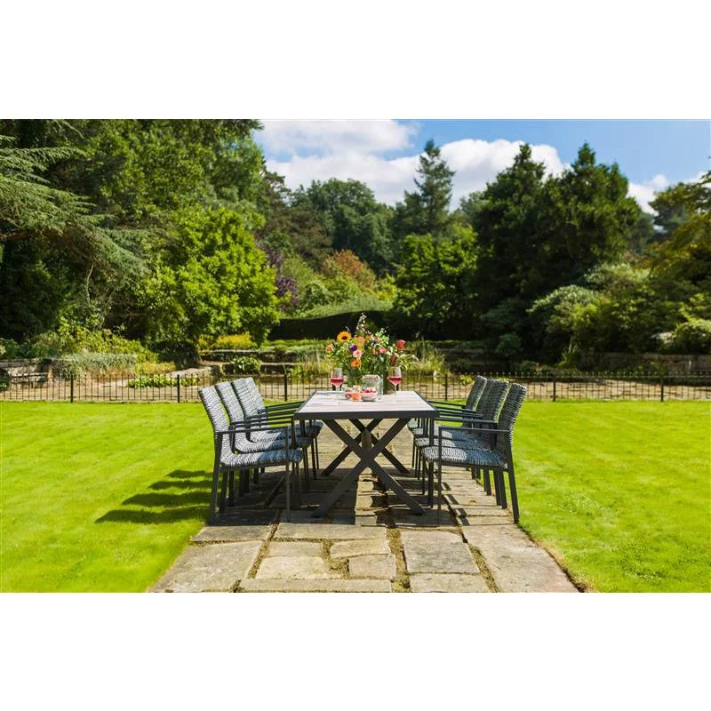 Besonders gut zu den Stühlen „Santa Marta“ passt der Gartentisch der Serie “Canterbury”. Auch können die Stühle perfekt zu weiteren Tischen mit Aluminium-Gestell und Keramik- oder HPL-Tischplatte kombiniert werden. Der Gartenstuhl ist absolut wetterfest, rostfrei und kann das ganze Jahr über im Freien stehen bleiben. Um die Gartenstühle dennoch vor Verschmutzungen und Umwelteinflüssen wie Blütenpollen oder Frost zu schützen, empfehlen wir die Verwendung einer passenden Schutzhülle.