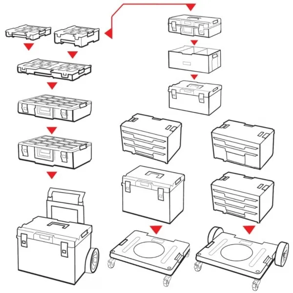 Achtung! Qbrick System ONE Drawer sind nicht kompatibel mit der ONE Transportplattform 1.0. Sie sind für die Verwendung mit den ONE Transportplattformen 2.0 Allterrain und Workshop vorgesehen.